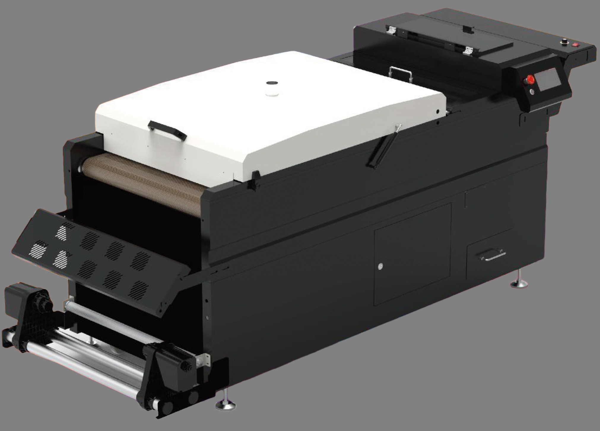 DTF Shaker: 60cm width, 9 heating lamps, touchscreen, conveyor belt, for high-volume production.